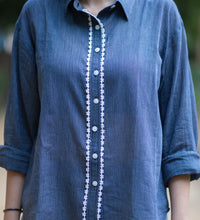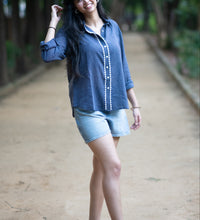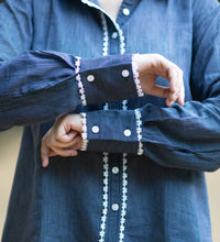 Elevate your everyday look with this navy blue striped shirt, crafted from breathable cotton for all-day comfort.