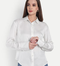 A modern twist on a timeless classic, this satin casual shirt is the definition of polished style.