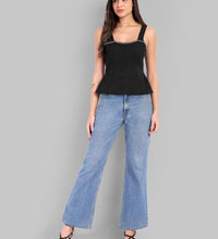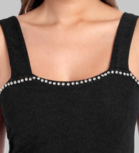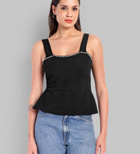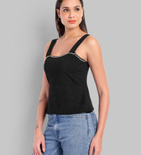 Turn heads in this effortlessly elegant black top, crafted in high-quality stretch Lycra fabric.