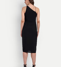 A sleek, body-hugging dress that flatters the waist and enhances confidence. Featuring an asymmetrical neckline, sleeveless cut, and a chic side slit for a modern touch. Crafted from stretchable fabric, it blends elegance with comfort for any occasion.