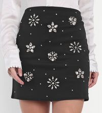 Sparkle with every step in this flirty and fun rhinestone-embroidered mini skirt!