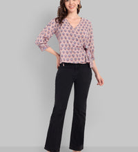 Turn heads in this effortlessly elegant black top, crafted in high-quality stretch Lycra fabric. The model is wearing size M...