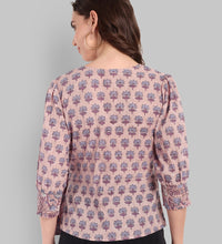 Make a statement in this bold silk corset top featuring a vibrant Indian-inspired print. The model is wearing size...