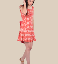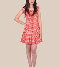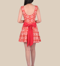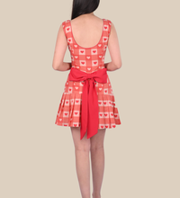 A playful drop-waisted dress crafted from breathable cotton fabric, featuring a tie-up bow at the back and knife pleats for added elegance. Perfect for beach vacations or casual parties.