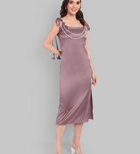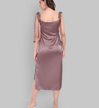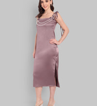 Designed to move with you, this dress is made from soft satin fabric with stretch, offering a flattering fall and comfortable wear.